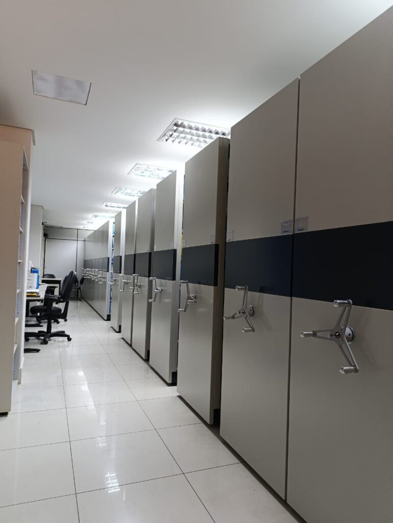 Além da digitalização, houve a reorganização dos documentos em prateleiras deslizantes de última geração, que otimizam o espaço, facilitam o acesso e garantem maior preservação do acervo. O novo modelo também amplia a segurança e a praticidade no armazenamento de documentos que ainda precisam ser mantidos em formato físico.