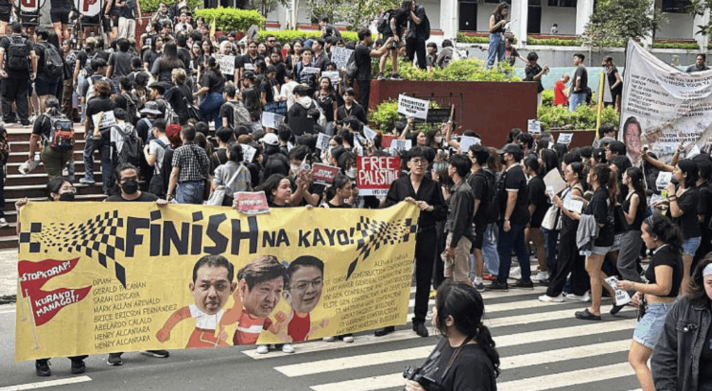 Centenas de pessoas reuniram-se em Manila para denunciar cortes orçamentais, atrasos em projetos de infraestruturas e alegada corrupção, com a participação de membros do corpo docente e grupos ativistas nas manifestações.